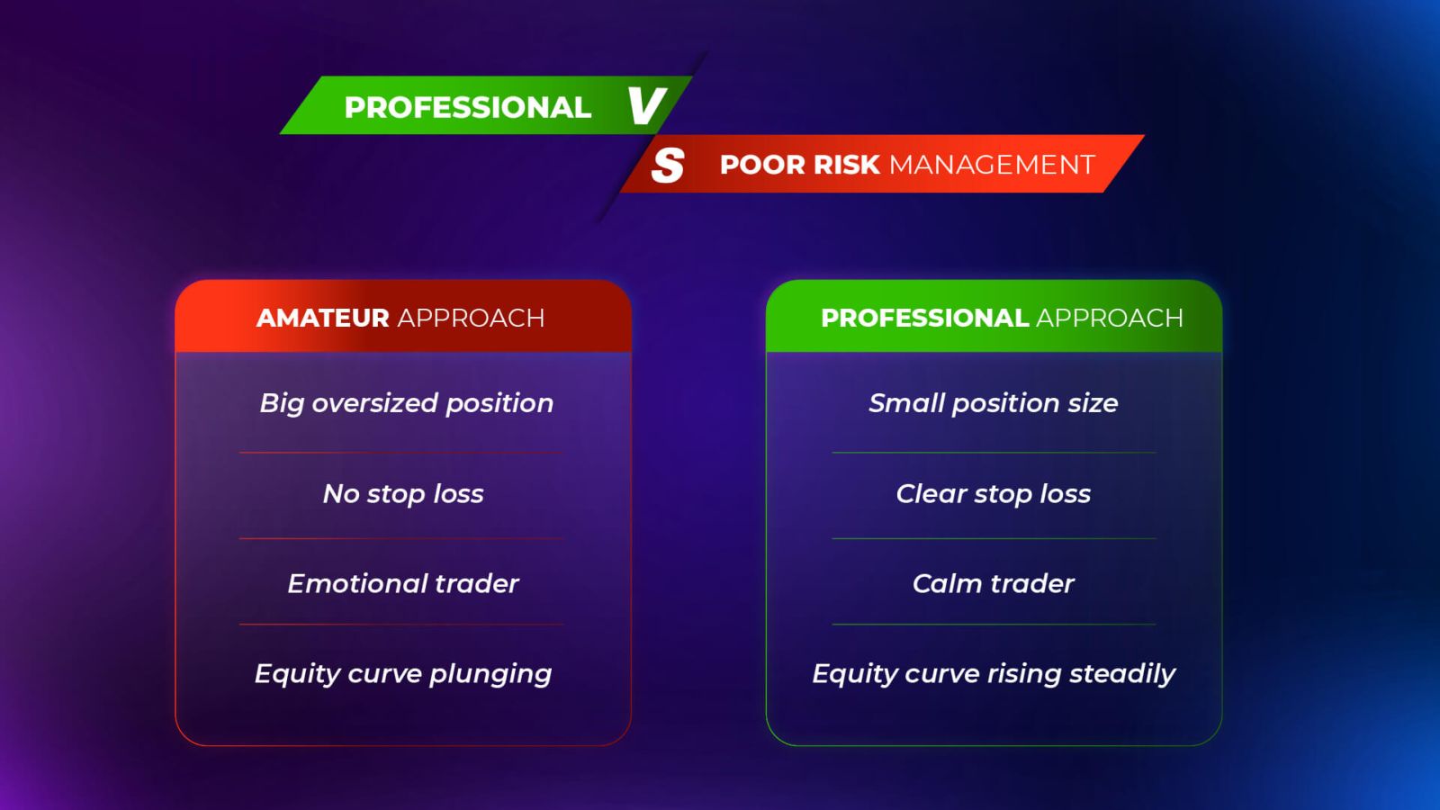 Risk management prevents deep drawdowns, so recovery is easier and faster.