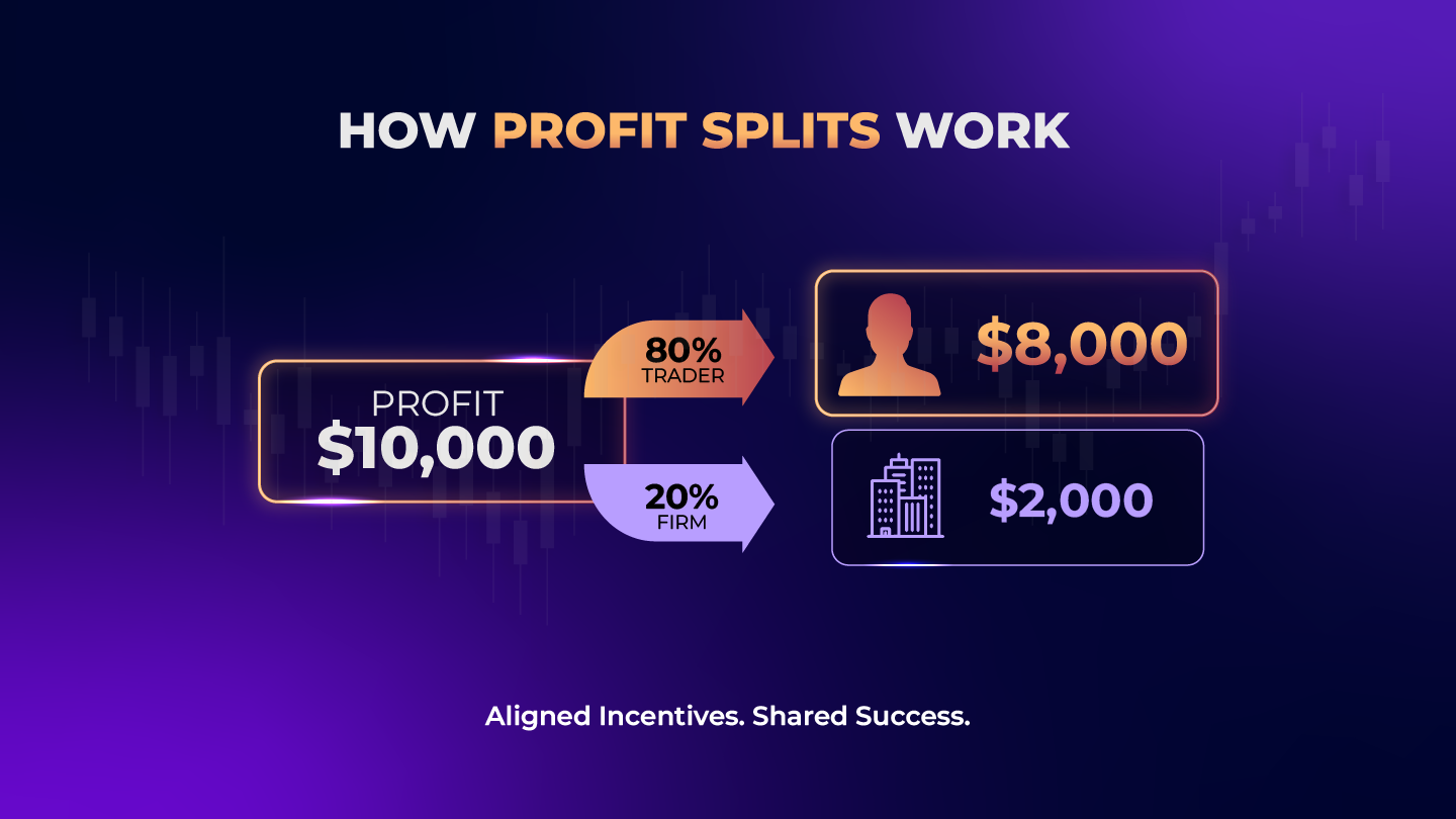 A profit split determines how gains are divided between the trader and the firm.